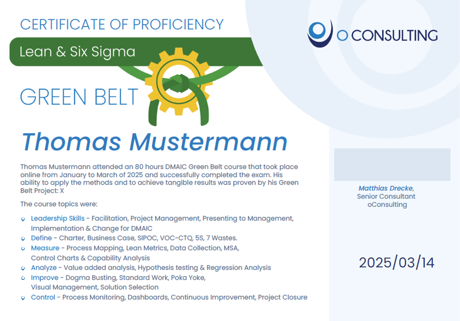 In den letzten 20 Jahren haben wir erlebt, dass auch Green Belts bei der Anwendung der vielen neuen Methoden und Ansätzen sehr stark von Erfahrung profitieren. Nachdem der Green Belt viele neue Methoden kennengelernt hat, hilft ihm der Coach, die neuen Ansätze in der Praxis umzusetzen.