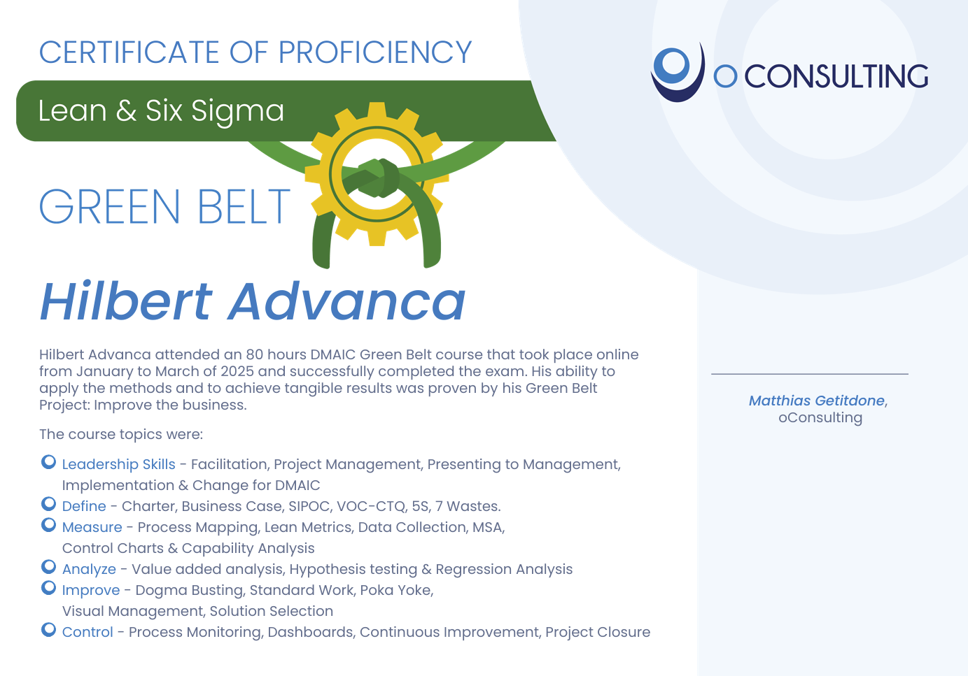 Certification by oConsulting according to ISO 18404 and ISO 13053