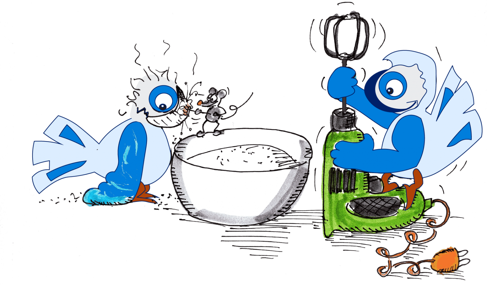 For his Grandma‘s birthday O‘Peep is making hundreds of decorated chocolated cookies. It‘s a hell of a job. Chaotic would be pretty polite to describe the kitchen. You can find dough, and many unbaked cookies. Some cookies are baked already, some are probably burned. And some cookies are with chocolate deco, yet. Anything on the way to become a cookie we call WIP.